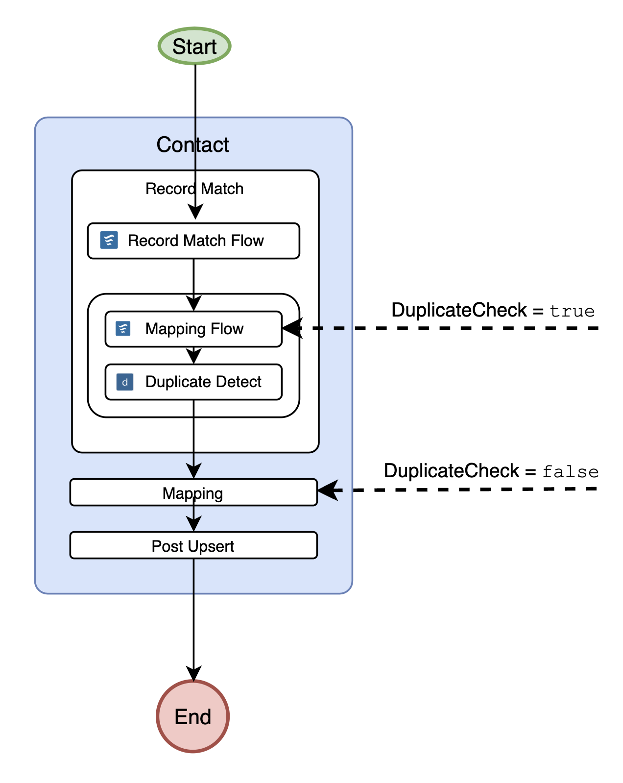 When the mapping flows run, sometimes a developer will want to apply some additional mapping rules in their flow during the “Record Match” or duplicate check. This is often because the rules for Salesforce Duplicate Detection are quite narrow.