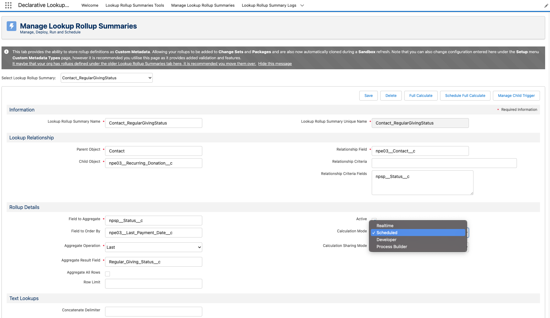 Select Lookup Rollup SummarysetCalculation ModetoScheduled