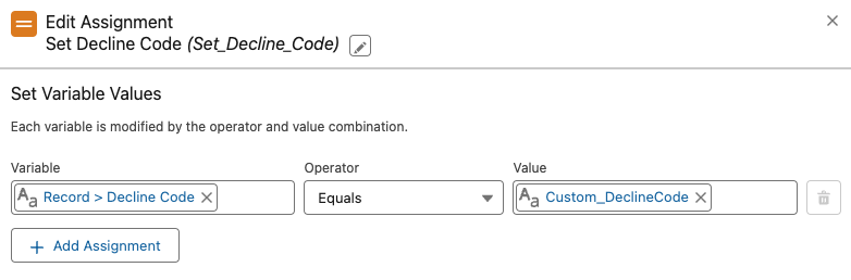 If you need to set additional information beyond the above you can do so by adding logic to your MoveData flows. For example, you may wish to write the decline code to a custom field on your Recurring Donation record: