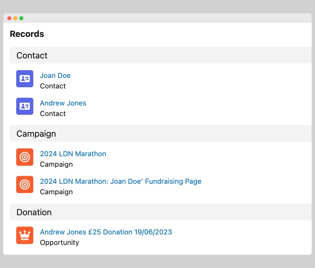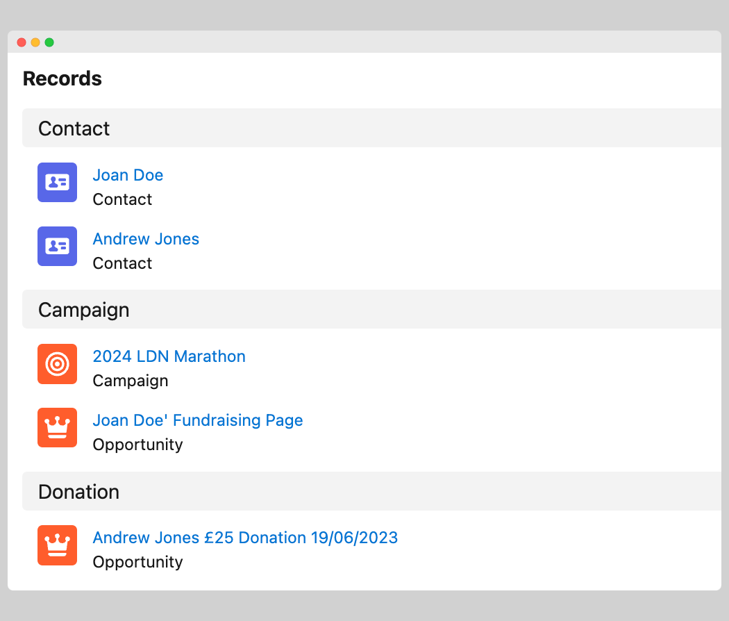 In this example we will be using the Opportunity record for the fundraiser campaigns.