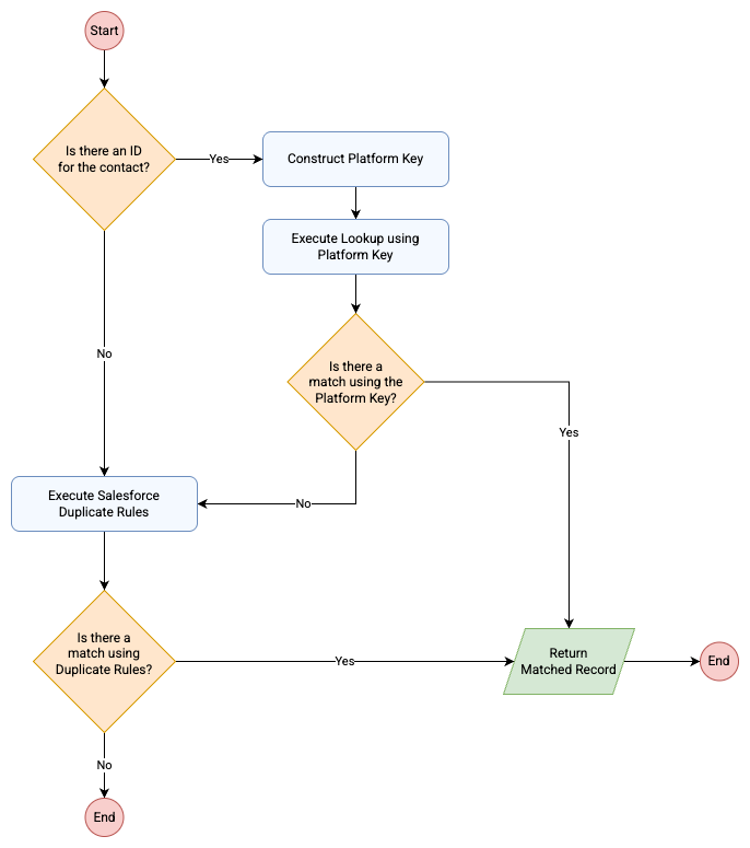 If you prefer to rely solely on Salesforce duplicate rules rather than platform unique identifiers for contacts and accounts: