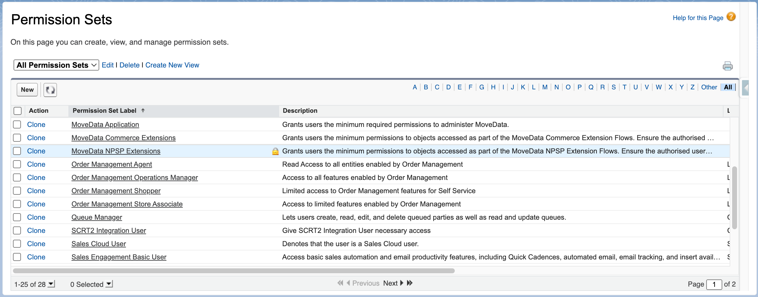 2. Find Extension Sets: Look for permission sets beginning with "MoveData" followed by your extension name